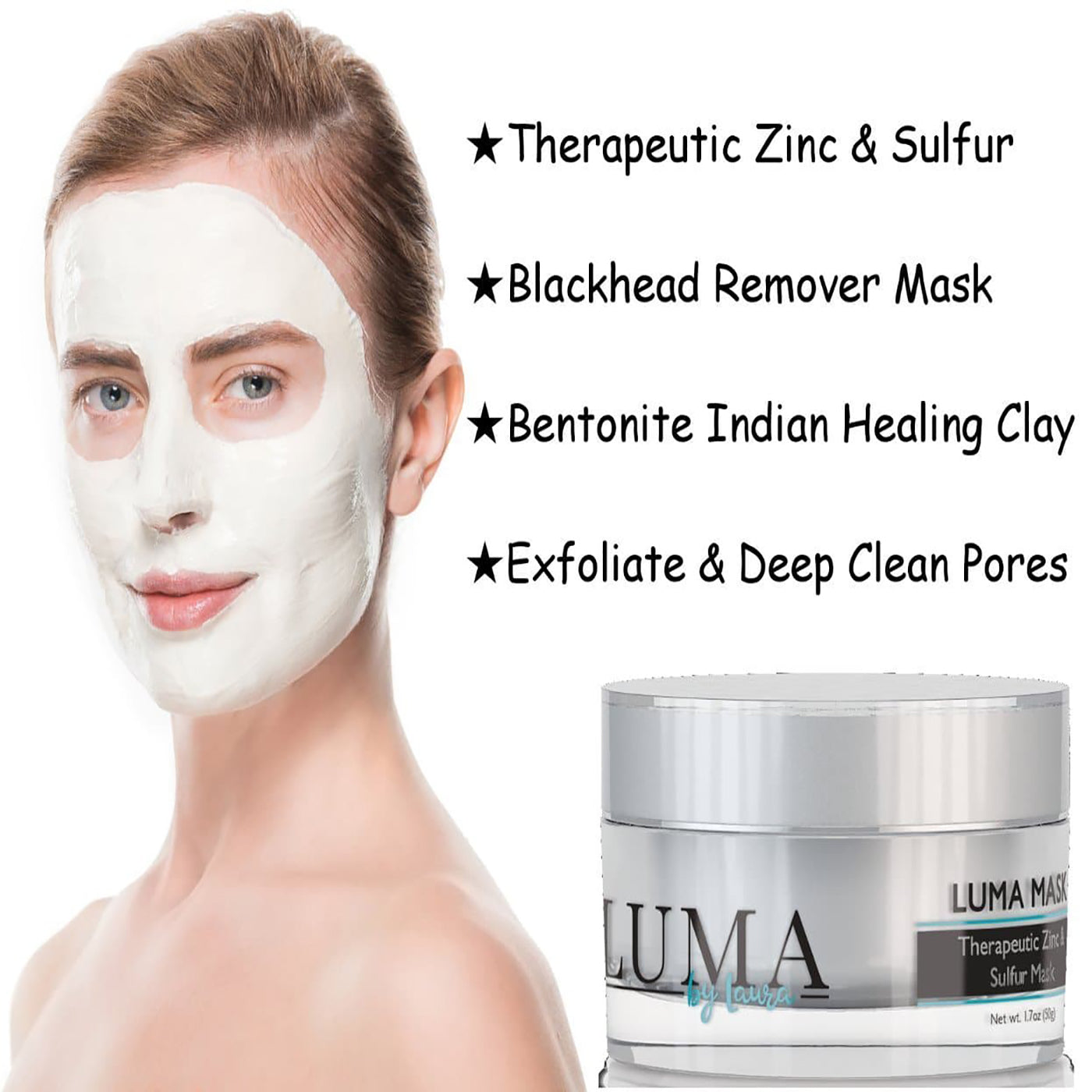 Luma Mask is made up of four natural ingredients: bentonite clay which unclogs the pores and removes impurities; salicylic acid which removes dead skin cells; zinc oxide which helps reduce redness; and sulfur which helps reduce blemishes.