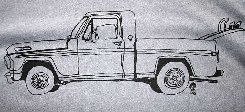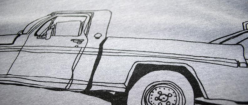 Printed with black water based ink on Deep Heather Grey 52% combed and ring-spun cotton 48% poly construction tee.