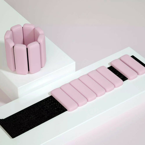 Set of two fixed-weight 1 lb bangles in silicone-coated stainless steel with adjustable Velcro fastening.